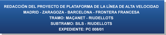 OBSERVACIÓN INICIAL: El Proyecto, inicialmente único (Tramo : Maçanet – Riudellots), se dividió posteriormente en dos subtramos,